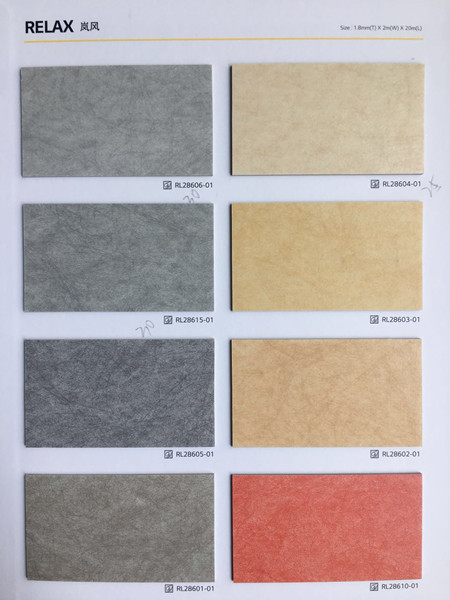 LG Hausys品牌嵐風 (RELAX1.8)無甲醛,環保健康,不含鄰苯二甲酸酯類增塑劑和重金屬,不添加任何回收材料;原料采用環境友善型可再生資源;添加抗菌劑。出色的防滑性能,經濟耐污、易清理、施工簡單、使用壽命長。適用場所:教育空間、連鎖店、辦公室。