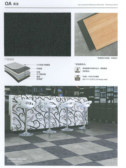 項目采用LX Hausys(原LG Hausys)商寶定制款5.0mm系列地板,產品特點: