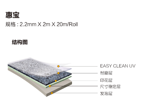 惠寶(Delight)系列產(chǎn)品表面采用全息處理(HPU是heigh poy urethane高密度聚氨酯),顯現(xiàn)現(xiàn)代氣息的真實感,以網(wǎng)狀結(jié)構(gòu)處理、具有耐污染性、耐碘性;表面含有納米銀而具有優(yōu)秀的抗菌性;優(yōu)異的耐久性能夠承受高強度人流量。使用場所:商業(yè)場所辦公室、學(xué)校、醫(yī)院、幼兒園等商業(yè)場所。