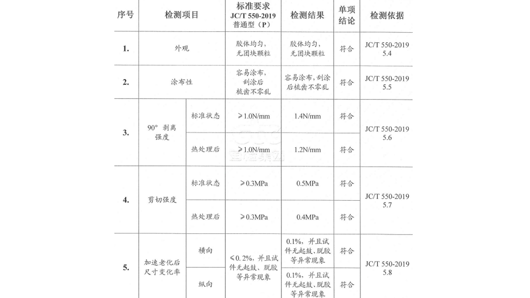 剝離強度和剪切強度表示膠水的粘結力,當這兩項指標過低時,往往在PVC塑膠地板的邊緣處出現翹邊等情況。