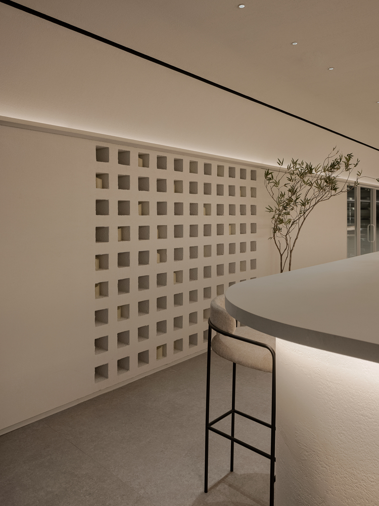 大面積色塊的運用強調了空間的主題:素雅簡潔